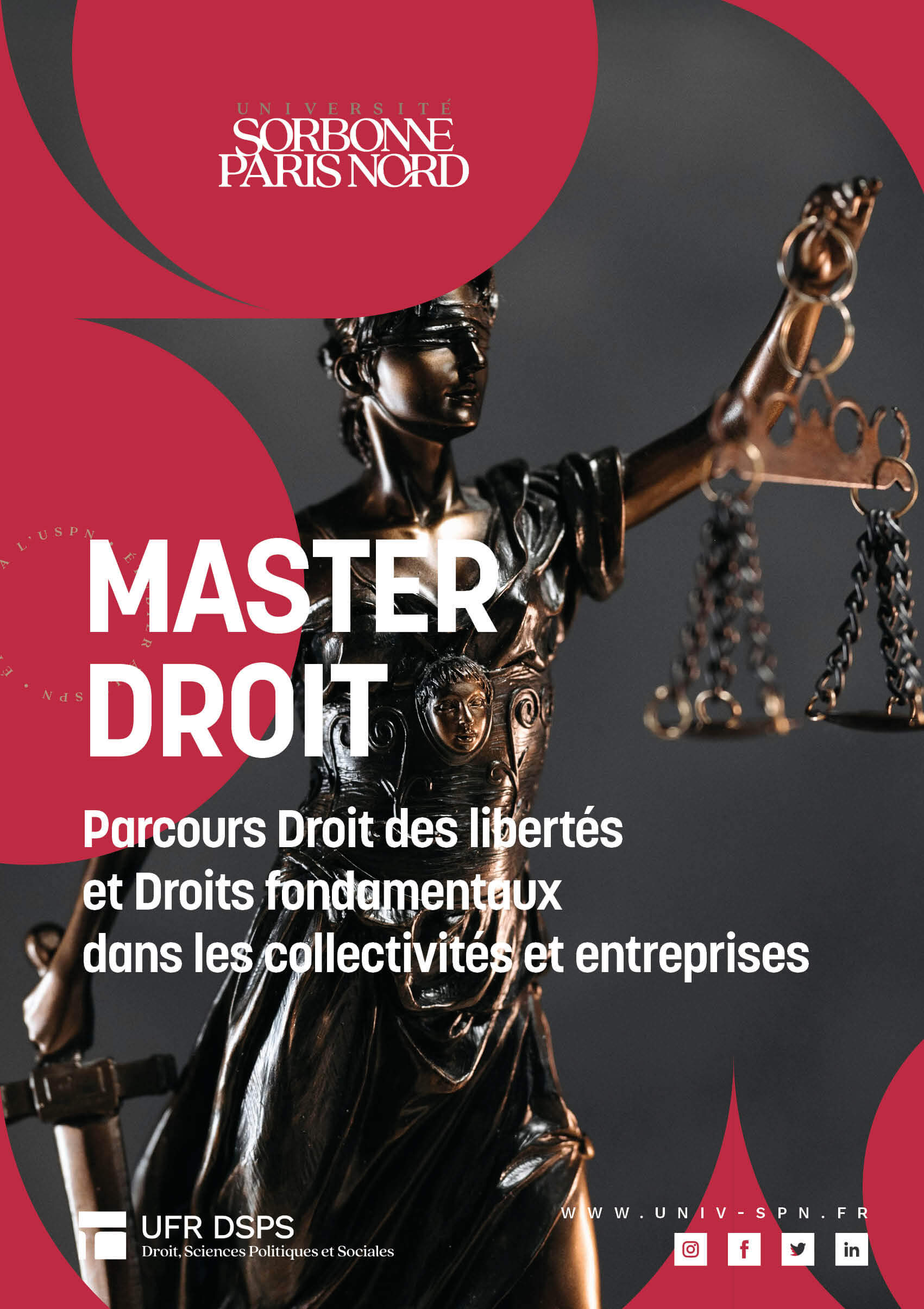 Le M2 mention Droit - parcours Droits et libertés fondamentaux dans les collectivités et entreprises n'est accessible que par le M1 mention Droit – parcours Droit privé général, le M1 mention Droit – parcours Droit social et le M1 mention Droit – parcours Droit public général.
